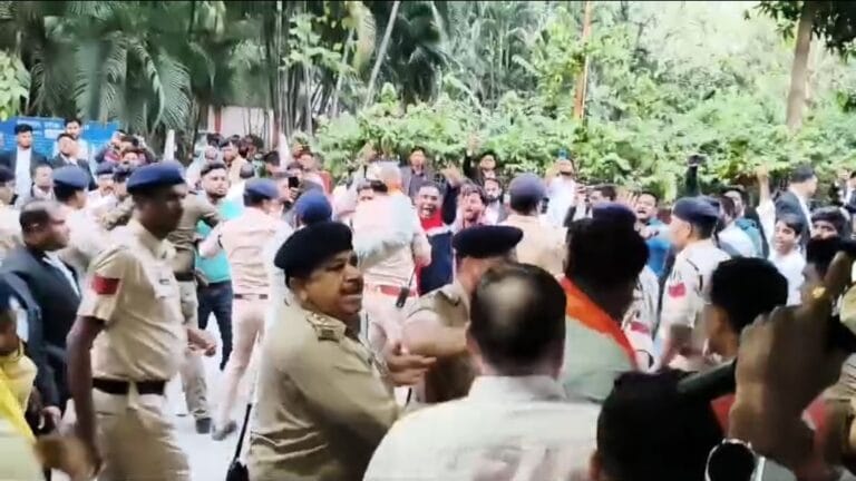 बिलासपुर।तखतपुर में सतनामी समाज के खिलाफ कथित आपत्तिजनक टिप्पणी के आरोप में गिरफ्तार कथा वाचक चैतन्य आशुतोष महाराज को जिला कोर्ट में पेश किया गया।इस बीच कोर्ट परिसर में हिंदू समाज के लोग महाराज के पक्ष में और सतनामी समाज के लोग महाराज के खिलाफ में आकर नारेबाजी करने लगे।जिसे देखकर पुलिस बल व्यवस्था करनी पड़ी।इसी दौरान देखते ही देखते माहौल इतना बिगड़ गया कि दोनों पक्षों के जानकर नारेबाजी करते हुए कोर्ट परिसर में हंगामा करना शुरू कर दिया।जिसके कारण पुलिस को बीच बचाव करते हुए काफी मशक्कत करनी पड़ी।