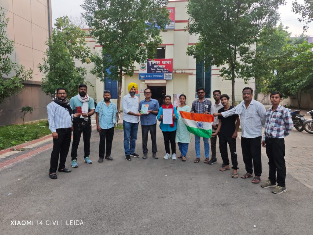 धार्मिक हिंसा भड़काने के लिए FIR की मांग… भाईचारा एकता मंच ने संविधान की पुस्तक और तिरंगे के साथ दिया तारबाहर थाना को ज्ञापन