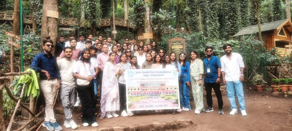 बिलासपुर, 27 जून 2025 — कृषि शिक्षा को व्यवहारिक, प्रायोगिक और अनुभवात्मक स्वरूप प्रदान करने की दिशा में एक अभिनव कदम उठाते हुए, बैरिस्टर ठाकुर छेदीलाल कृषि महाविद्यालय एवं अनुसंधान केंद्र, बिलासपुर तथा कृषि महाविद्यालय एवं अनुसंधान केंद्र, लोरमी-मुंगेली के संयुक्त तत्वावधान में बी.एससी. (कृषि) तृतीय वर्ष के 47 छात्र-छात्राओं का एक अंतरराज्यीय शैक्षणिक भ्रमण आयोजित किया गया है। यह भ्रमण पाठ्यक्रम AHPD-5321 के अंतर्गत संचालित हो रहा है।