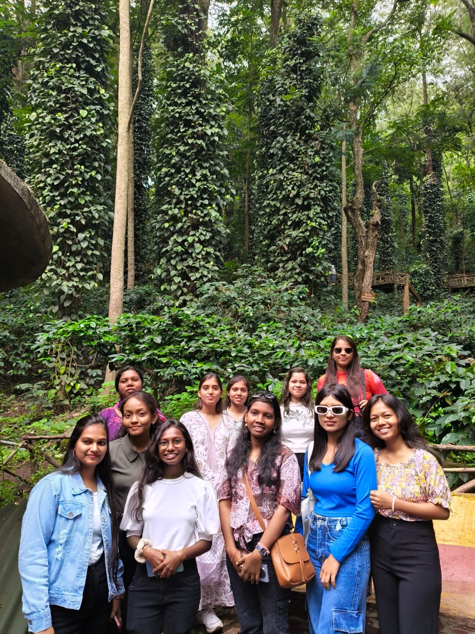विद्यार्थियों ने यहाँ कॉफी बागानों, काली मिर्च की बेलों (जो सिल्वर ओक वृक्षों पर उगाई जाती है), तथा ड्रैगन फ्रूट की व्यवस्थित खेती का प्रत्यक्ष अवलोकन किया। विशेष आकर्षण रहा मल्टी स्टोरी (बहिस्तरीय) खेती प्रणाली, जिसमें विभिन्न ऊँचाई की फसलें एक साथ एक ही क्षेत्र में उगाई जाती हैं— जैसे कि: