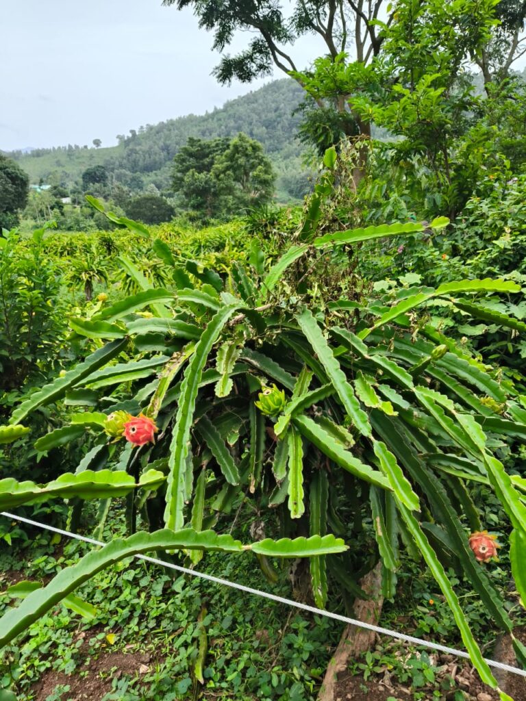- नीचे स्तर: ड्रैगन फ्रूट व अन्य रेंगने वाली फसलें