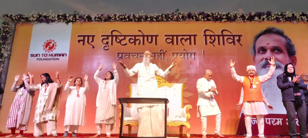 बिलासपुर।पुलिस ग्राउण्ड में आयोजित नये दृष्टिकोण वाले शिविर के आज चौथे दिन की सुबह संध्या में सन टू ह्यूमन फाउण्डेशन के संस्थापक परम आलय ने शिविर में आये हर वर्ग के हजारों लोगों को सहज, सरल सूत्रों से ,चर्चा प्रश्न उत्तरों के साथ जीवन को समृद्ध करने के प्रयोग कराये