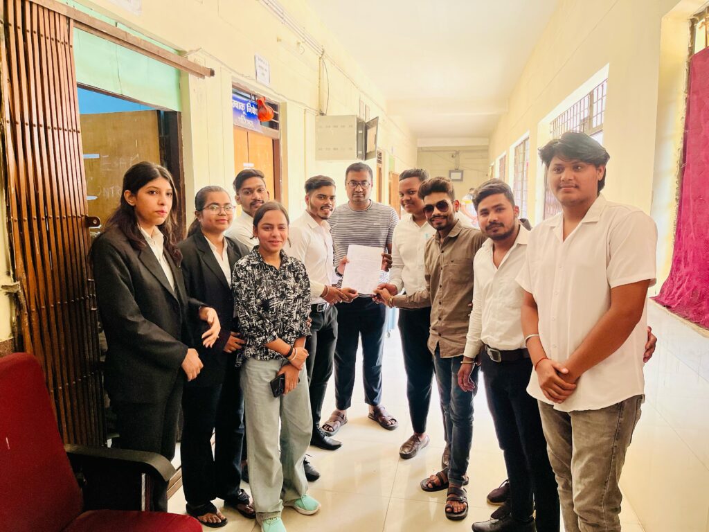 ज्ञापन सौपते समय प्रतिभा पैनल के आयुष राठौर, देवव्रत साहू, राहुल देवांगन, विशाल मरावी, आलोक सिंह राजपूत, योगेश बंटी सूर्या, मिथलेश साहू, समीर नारंग, अंकिता काँछी, वर्षा मिश्र, साक्षी शर्मा व अन्य प्रतिभा पैनल के छात्र छात्राएं उपस्थित रहे।