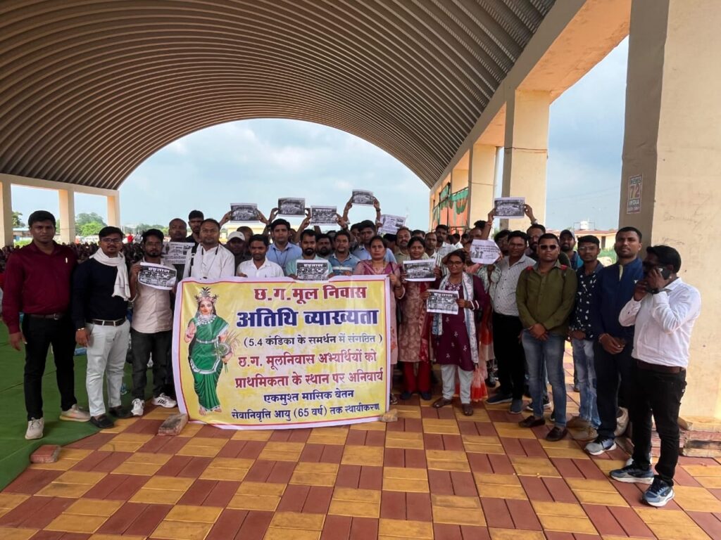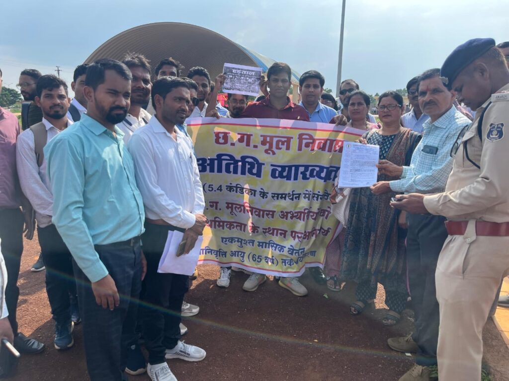 अतिथि व्याख्याता नीति-2024 की कंडिका-5.4 में तहत् छत्तीसगढ़ मूल निवास अनिवार्य करने एक दिवसीय नवा रायपुर तुता में धरना प्रदर्शन किया गया