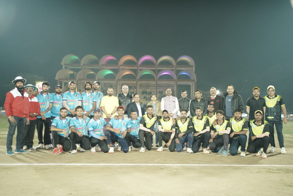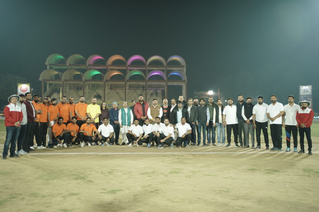 सभी अतिथियों ने टॉस कराकर एवं खिलाड़ियों से परिचय प्राप्त कर मैच प्रारंभ कराया।