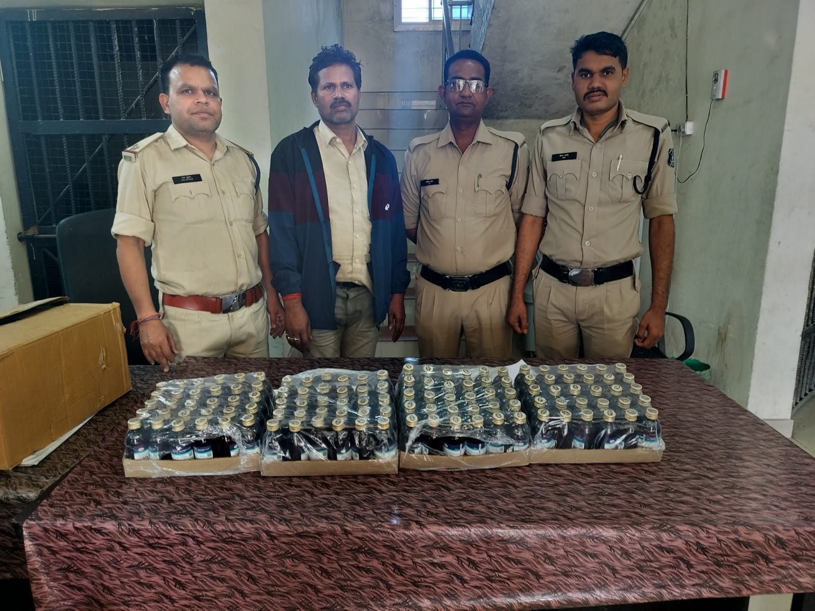 अवैध कफ सिरप की तस्करी करने वाले पर पुलिस की बड़ी कार्रवाई….1 आरोपी से कार सहित बड़ी मात्रा में प्रतिबंधित सिरप जब्त