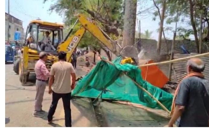 इंदु चौक में अवैध निर्माण पर निगम का बुलडोजर, दो मंजिला शादी हाल जमींदोज