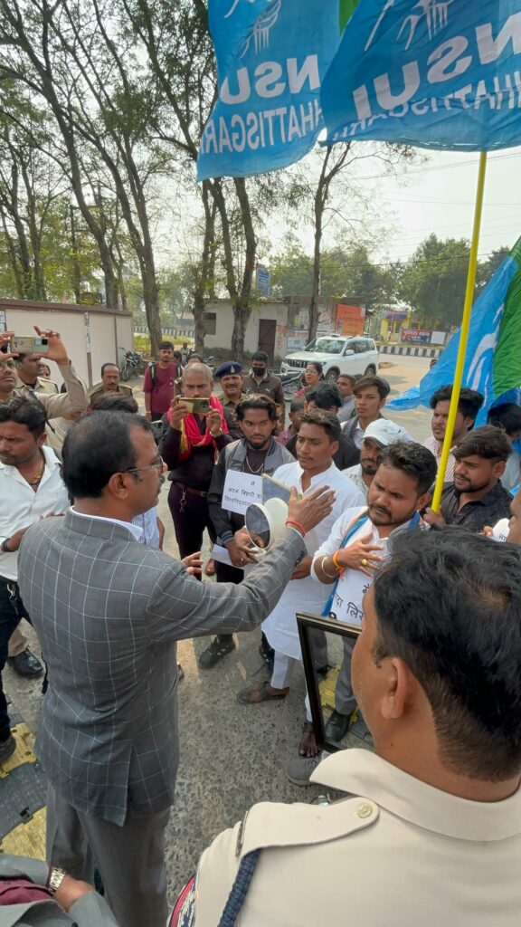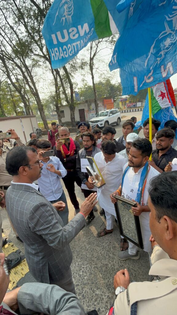 बिलासपुर। अटल बिहारी वाजपेयी विश्वविद्यालय में व्याप्त अनियमितताओं, छात्रों से हो रहे आर्थिक दोहन और दीक्षांत समारोह जैसी औपचारिकताओं के नाम पर लाखों–करोड़ों रुपये के दुरुपयोग के खिलाफ एनएसयूआई ने जोरदार विरोध प्रदर्शन किया। यह विरोध रंजेश सिंह, एनएसयूआई प्रदेश सचिव के नेतृत्व में नुक्कड़ सभा और बाजे–गाजे के साथ आयोजित किया गया, जिसका उद्देश्य गूंगी–भैरी बनी यूनिवर्सिटी प्रबंधन और उच्च शिक्षा विभाग को सच का आईना दिखाना था।
