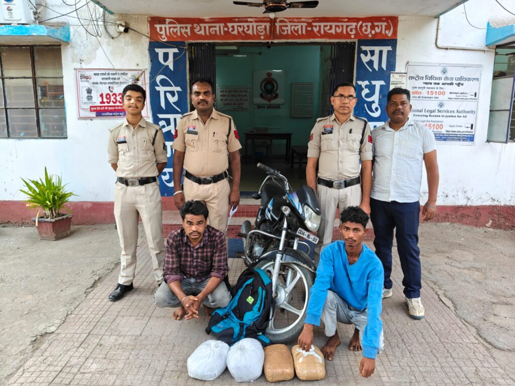 रायगढ़ । वरिष्ठ पुलिस अधीक्षक शशि मोहन सिंह के दिशा निर्देशन में अवैध मादक पदार्थों के विरुद्ध चलाए जा रहे “ऑपरेशन आघात” के तहत रायगढ़ पुलिस द्वारा लगातार सख्त कार्रवाई की जा रही है। इसी क्रम में पिछले दो दिनों में थाना साइबर, चक्रधरनगर और घरघोड़ा पुलिस की संयुक्त टीमों द्वारा बैक टू बैक कार्रवाई करते हुए गांजा तस्करी के तीन अलग-अलग मामलों का खुलासा कर कुल चार आरोपियों को गिरफ्तार कर न्यायिक रिमांड पर भेजा गया है।