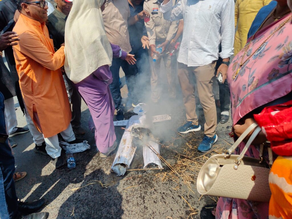 सिविल लाइन पुलिस की आंखों के सामने हुआ पुतला दहन