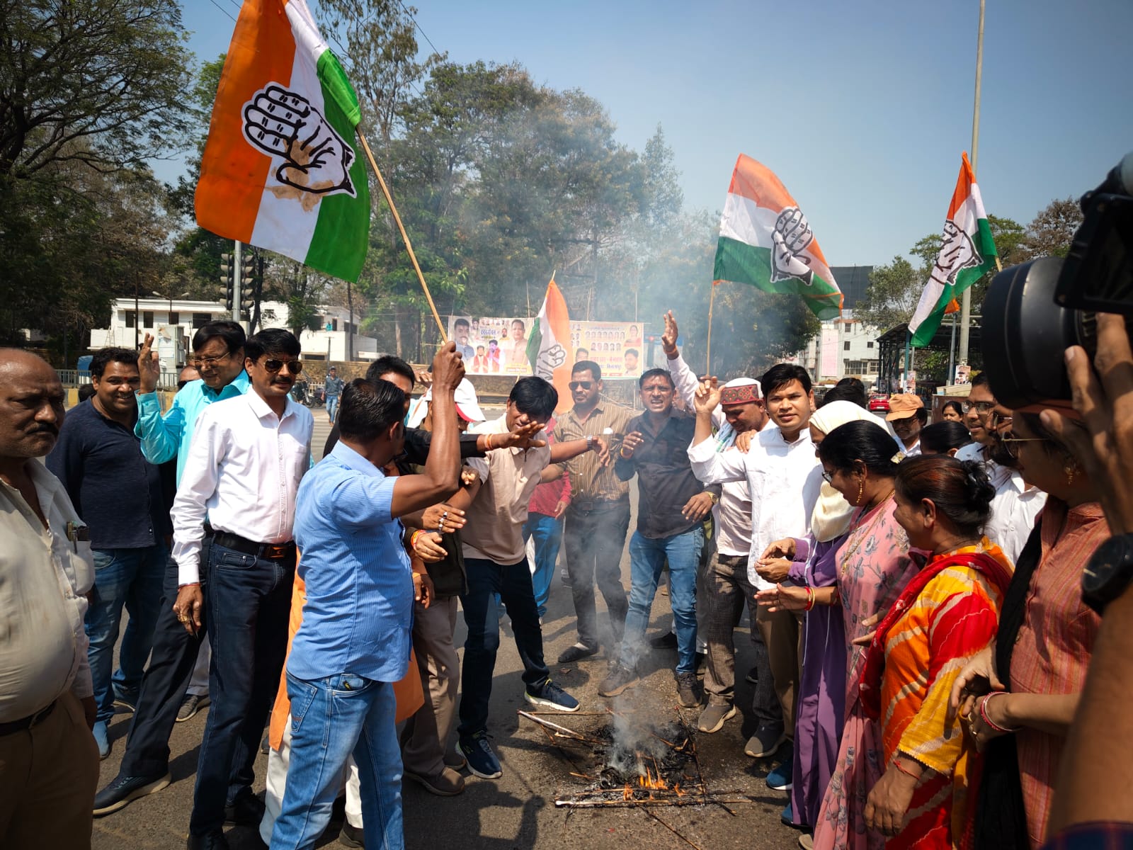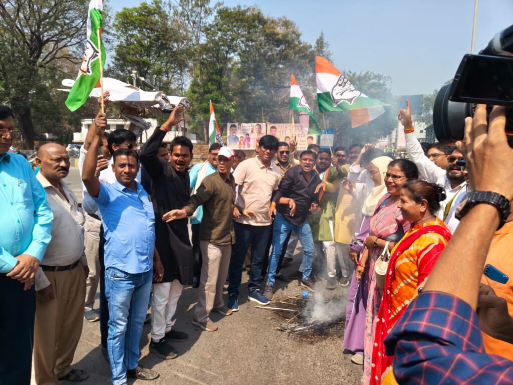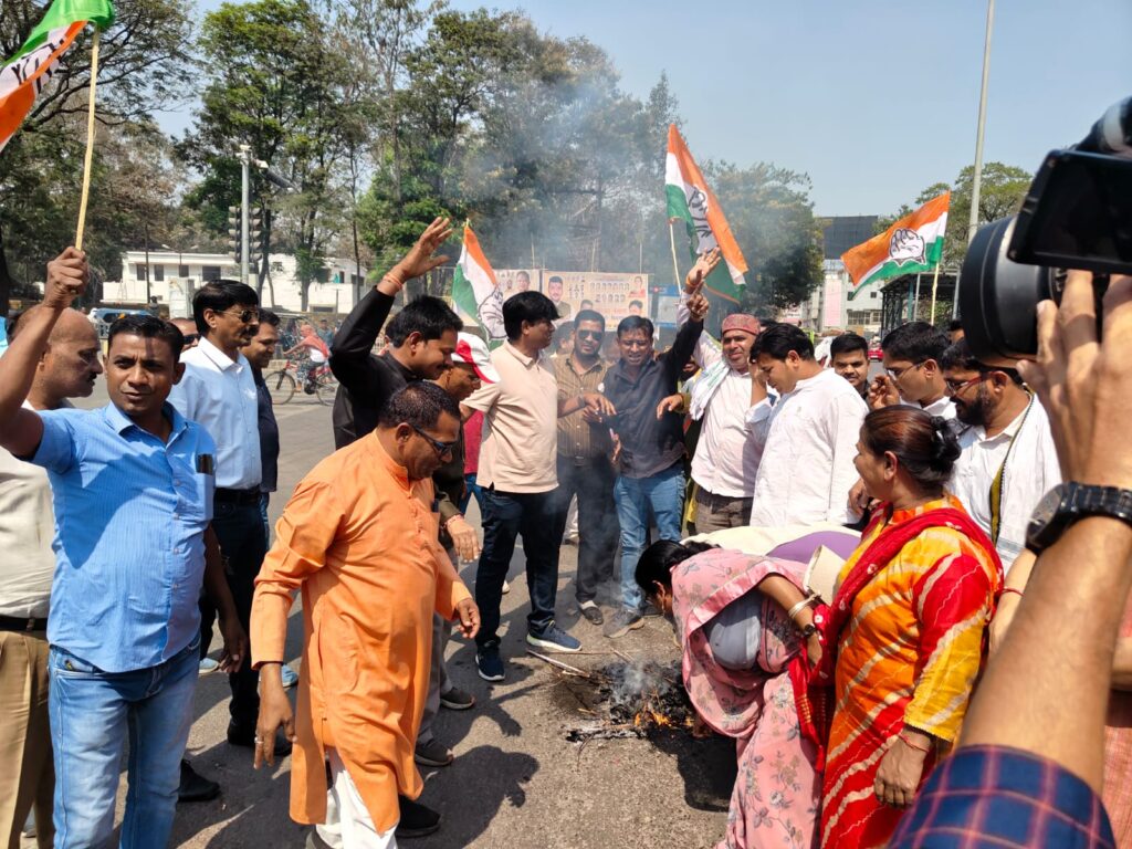 इधर कांग्रेसी जमकर नारेबाजी करते रहे उधर पुतला दहन कर दिया गया