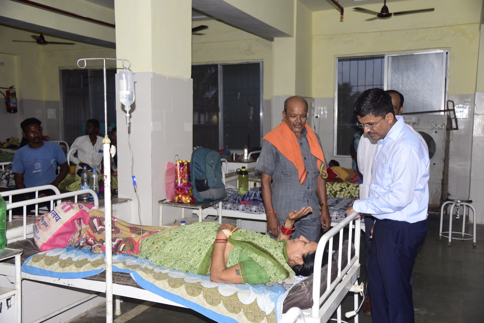 कलेक्टर ने अस्पताल में घुम-घुमकर व्यवस्थाएं देखी। कलेक्टर ने इलाज करा रहे मरीजों से चर्चा की।