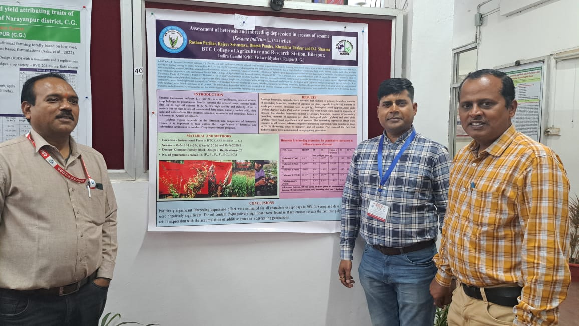 बिलासपुर – इंदिरा गांधी कृषि विश्वविद्यालय के 39वें स्थापना दिवस के अवसर पर इंदिरा गांधी कृषि विश्वविद्यालय, रायपुर एवं राष्ट्रीय कृषि विकास सहकारी लिमिटेड, बरामूला (जम्मू कश्मीर) के संयुक्त तत्वावधान में दिनांक 20 से 22 जनवरी 2025 तक आयोजित “कृषि, विज्ञान और प्रौद्योगिकी के लिए वैश्विक अनुसंधान पहल” विषय पर आयोजित तीन दिवसीय अंतर्राष्ट्रीय सम्मेलन में बैरिस्टर ठाकुर छेदीलाल कृषि महाविद्यालय एवं अनुसंधान केंद्र, बिलासपुर के अनुवांशिकी एवं पादप प्रजनन विज्ञान विषय के वैज्ञानिक डॉ. (ले.) रोशन परिहार को उनके शोध पत्र “तिल की विभिन्न किस्मों के बीच संकरण कराकर संकर ओज और अंतः प्रजनन ह्रास का आंकलन” विषय पर बेस्ट पोस्टर का अवार्ड प्रदान किया गया।