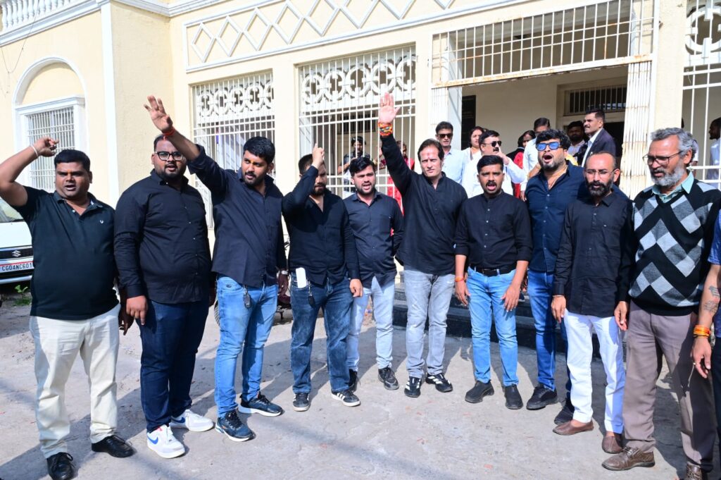 नगरीय प्रशासन मंत्री अरुण साव,विधायक राजेश मूणत और महापौर मीनल चौबे की हठधर्मिता के चलते शासन द्वारा निर्मित सुव्यवस्थित यूथ हब को तोड़कर सैकड़ो परिवारों को बेरोजगार करने वालों के ऊपर कार्यवाही की मांग को लेकर विकास उपाध्याय ने अपने कांग्रेस के साथियो के साथ कांग्रेस भवन से काले कपड़े में शिकायत करने प्रधानमंत्री मोदी जी से मिलने जा रहे थे लेकिन उन्हें पुलिस द्वारा बलपूर्वक रोक दिया गया।