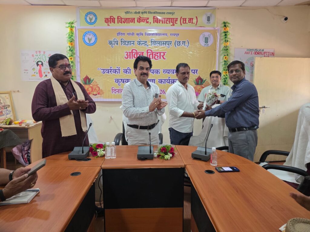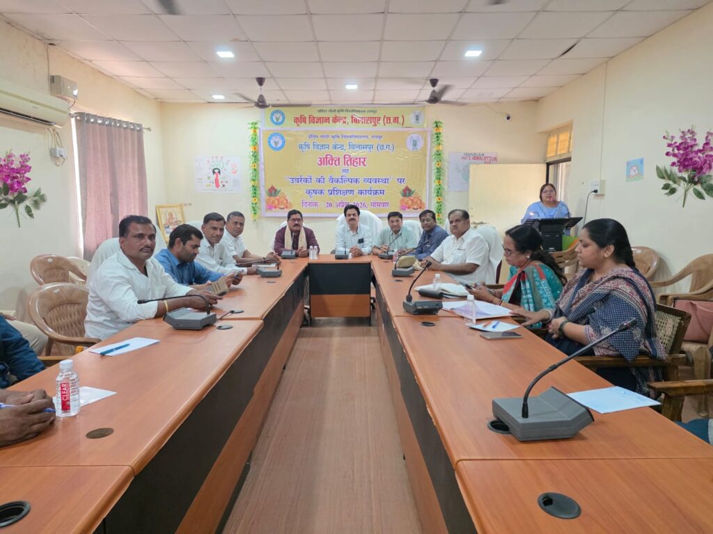 बिलासपुर। कृषि विज्ञान केंद्र, बिलासपुर में पारंपरिक लोकपर्व अक्ति तिहार के साथ-साथ उर्वरकों की वैकल्पिक व्यवस्था पर कृषक प्रशिक्षण कार्यक्रम का उत्साह, श्रद्धा एवं हर्षोल्लास के साथ आयोजन किया गया। कार्यक्रम में कृषि परंपराओं, ग्रामीण संस्कृति एवं किसानों की समृद्धि तथा टिकाऊ कृषि प्रणाली से जुड़े विविध आयोजन संपन्न हुए।