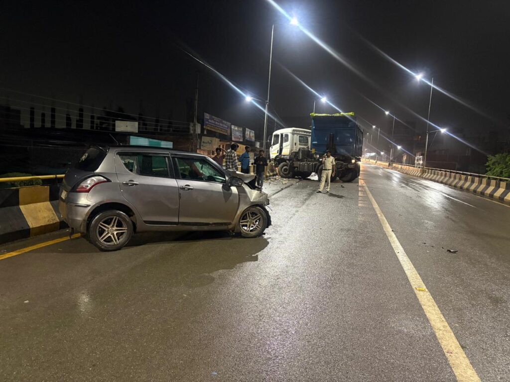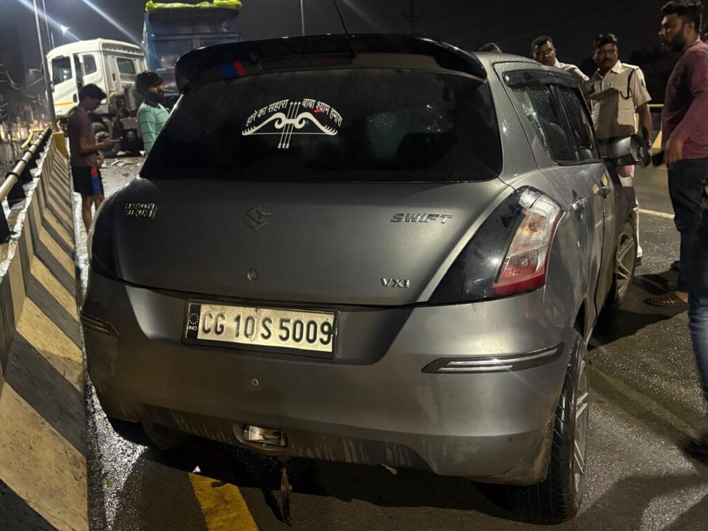 बिलासपुर से रायपुर जाते समय राजीव गांधी चौक के पास फ्लाई ओवर में जैसे ही ऊपर चढ़ोगे,ठीक वही पर ट्रेलर और स्विफ्ट कार में जबरदस्त भिड़ंत हो गया है।