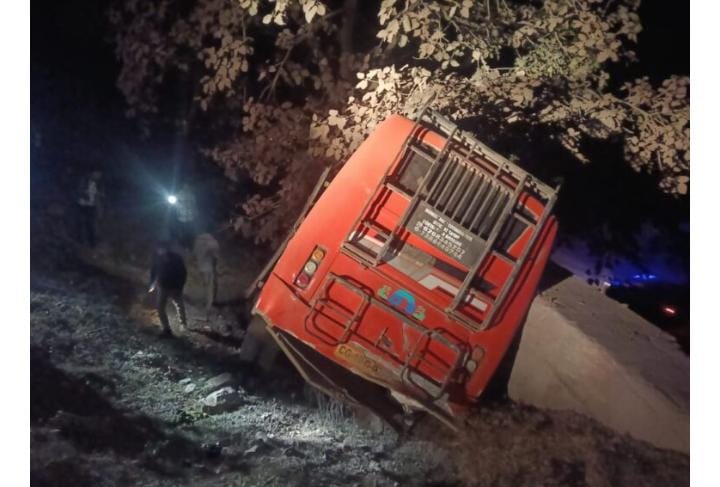 बिलासपुर – मरवाही से बिलासपुर आ रही दीप ट्रैवल्स की बस रात में केंदा घाटी में बड़ा हादसे का शिकार हो गई। बंजारी माता मंदिर के पास सड़क पर बने गड्डों के कारण बस अचानक अनियंत्रित होकर सड़क से नीचे उतर गई और जोरदार धमाके के साथ पलट गई। हादसा इतना भीषण था कि बस के पलटते ही उसमें सवार यात्रियों में अफरा-तफरी और चीख-पुकार मच गई।