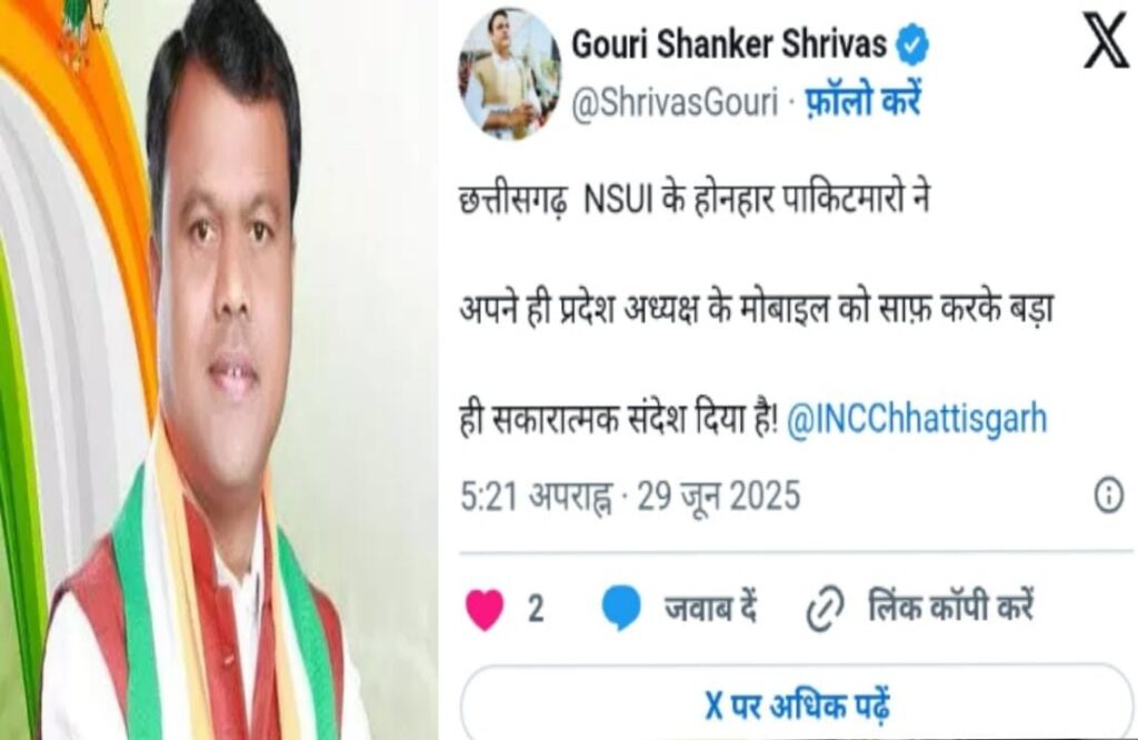 ये क्याः PCC प्रदेश अध्यक्ष दीपक बैज NSUI के प्रदेश कार्यकारिणी के बैठक में अपना ही मोबाइल नहीं बचा पाए। बीजेपी नेता गौरी शंकर श्रीवास ने ट्वीट करते हुए चुटकी ली