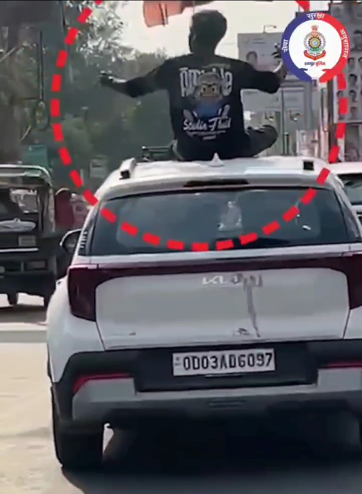 रायपुर। लापरवाही पूर्वक कार के ऊपर बैठकर