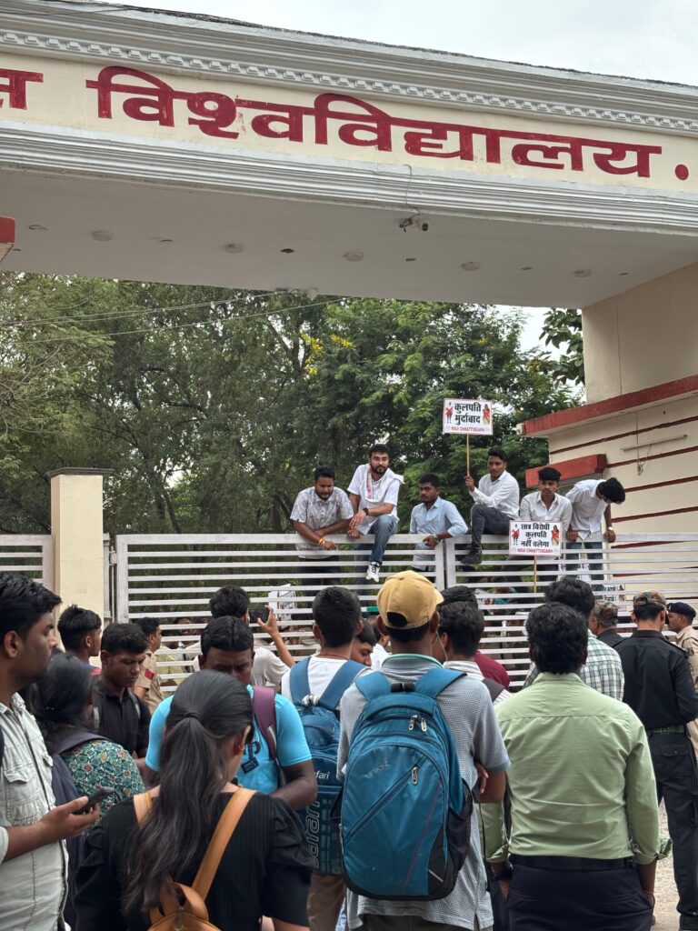 आक्रोशित छात्रों ने विश्वविद्यालय प्रशासन की लापरवाही को लेकर ज़ोरदार नारेबाज़ी की —