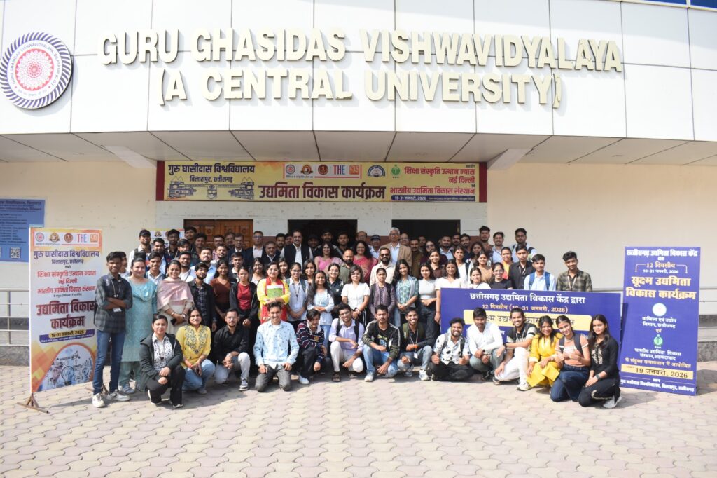 बिलासपुर ।छत्तीसगढ़ को “विकसित राज्य” बनाने की दिशा में वाणिज्य एवं उद्योग विभाग, छत्तीसगढ़ शासन तथा भारतीय उद्यमिता विकास संस्थान (EDII) के संयुक्त तत्वावधान में दिनांक 19 जनवरी 2026 से 31 जनवरी 2026 तक गुरु घासीदास विश्वविद्यालय, जिला बिलासपुर में “उद्यमिता एवं स्वरोजगार पर 12 दिवसीय सूक्ष्म उद्यम विकास कार्यक्रम” का सफल आयोजन किया गया।