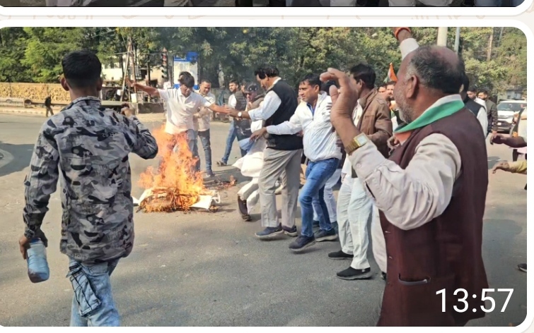 गृहमंत्री का पुतला दहन किया कांग्रेसियों ने