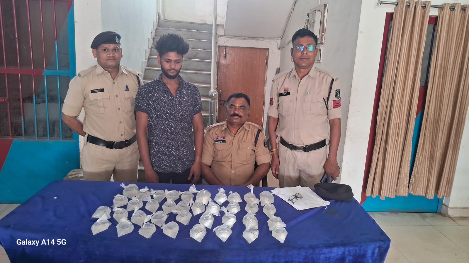 बिलासपुर। वर्तमान में दिनांक 2.अप्रैल से 4 अप्रैल तक ग्राम बोड़सरा में मेला का आयोजन हो रहा है, मेले में कानून एवं शांति व्यवस्था बनाए रखने हेतु वरिष्ठ पुलिस अधीक्षक बिलासपुर रजनेश सिंह द्वारा व्यापक दिशा निर्देश दिए गए हैं। ग्राम बोड़सरा में मेला स्थल के पास एक व्यक्ति द्वारा भारी मात्रा में अवैध रूप से महुआ शराब रखकर बिक्री करने की सूचना प्राप्त होने पर वरिष्ठ पुलिस अधीक्षक रजनेश सिंह को अवगत कराते हुए उनके निर्देशानुसार, अतिरिक्त पुलिस अधीक्षक अनुज कुमार एवं नगर पुलिस अधीक्षक रश्मित कौर चावला के मार्गदर्शन में तत्काल मेला स्थल में ड्यूटी कर रहे थाना प्रभारी उत्तम साहू एवं स्टाफ द्वारा व्यक्ति के घर ग्राम बोड़सरा में घेराबंदी कर रेड कार्यवाही किया गया। व्यक्ति के कब्जे से 36 पाव प्लास्टिक पन्नी में भरा हुआ 9 लीटर महुआ शराब कीमती 2350 रुपए एवं बिक्री रकम 550 रुपए जप्त कर व्यक्ति के विरुद्ध आबकारी अधिनियम की धारा 34(2) के अनुसार कार्यवाही कर रिमांड पर माननीय न्यायालय पेश किया गया है।प्रकरण की उक्त कार्यवाही में वरिष्ठ अधिकारियों के निर्देशन एवं मार्गदर्शन में थाना प्रभारी चकरभाठा उत्तम कुमार साहू, प्रधान आरक्षक प्रभाकर सिंह, आरक्षक भागवत चंद्राकर, रामकुमार बघेल, एवं महिला आरक्षक प्रियंका सिंह, का विशेष योगदान रहा।