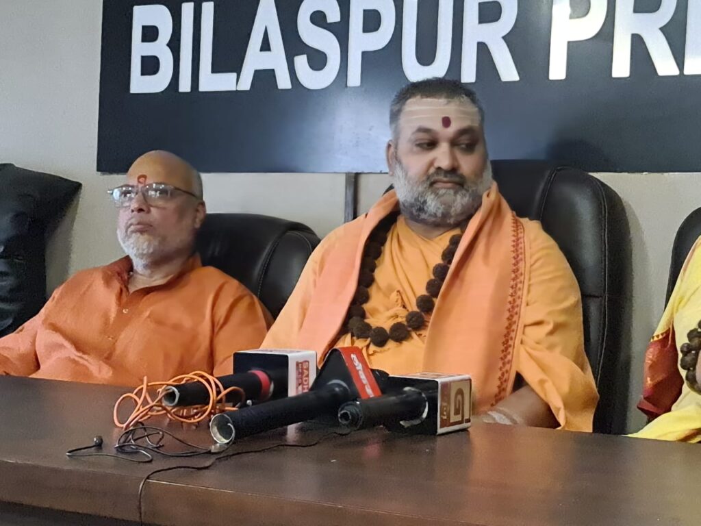 बिलासपुर। सरकंडा सुभाष चौक स्थित त्रिदेव मंदिर श्री पीतांबरा पीठ में भी रजत जयंती उत्सव का आयोजन किया गया है, यहां देवी भागवत कथा के साथ विभिन्न धार्मिक अनुष्ठान संपन्न हो रहे हैं, जिसमें देशभर से संत समाज भी सम्मिलित हो रहे है। शनिवार को श्री स्वामी सर्वेश्वरानंद सरस्वती जी महाराज, भक्ति पीठाधीश्वर बृजघाट हापुर उत्तर प्रदेश, श्री 108 श्री स्वामी अभेदानंद सरस्वती जी महाराज परमार्थ ज्ञान मंदिर हरिद्वार उत्तराखंड और पीतांबर पीठाधीश्वर, अखिल भारतीय संत समिति धर्म समाज छत्तीसगढ़ प्रमुख डॉक्टर दिनेश चंद्र महाराज बिलासपुर प्रेस क्लब पहुंचे, जहां उन्होंने पत्रकारों को जानकारी देते हुए बताया कि