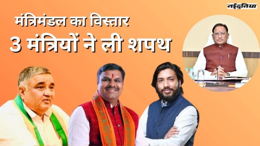 रायपुर: छत्तीसगढ़ में हरियाणा की तर्ज पर मंत्रिपरिषद का विस्तार करते हुए मुख्यमंत्री विष्णुदेव साय ने बुधवार को अपने मंत्रिमंडल में तीन नए चेहरों को शामिल किया। राज्यपाल रमेन डेका ने राजभवन के दरबार हाल में आयोजित गरिमामय समारोह में आरंग से विधायक खुशवंत साहेब, दुर्ग शहर से विधायक गजेंद्र यादव और अंबिकापुर से विधायक राजेश अग्रवाल को पद एवं गोपनीयता की शपथ दिलाई। उल्लेखनीय है कि तीनों पहली बार विधायक बने हैं और अब पहली बार मंत्रिमंडल का हिस्सा बने हैं।