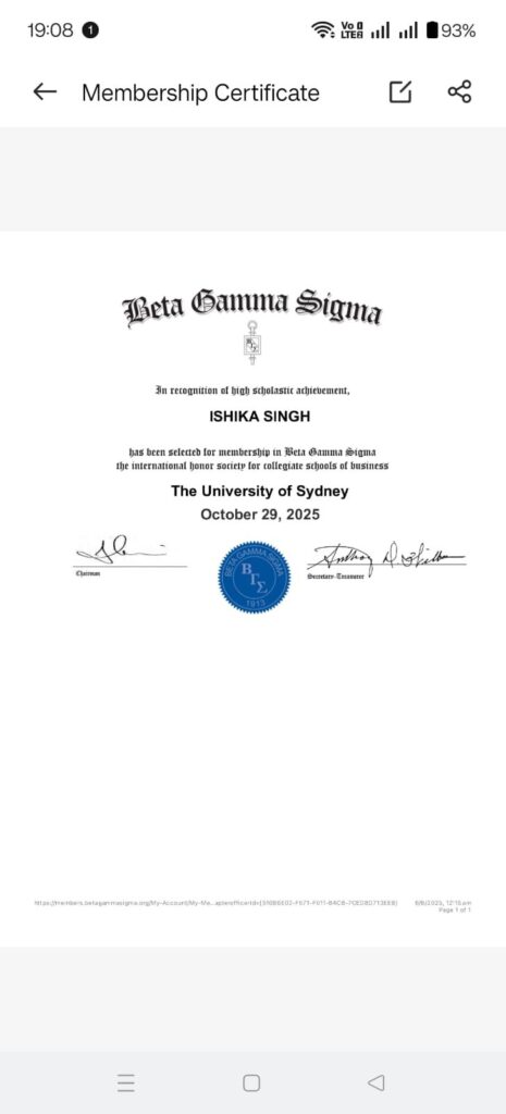 उच्च शैक्षणिक सम्मान, इशिका सिंह को मिला बीटा गामा सिग्मा की सदस्यता में स्थान