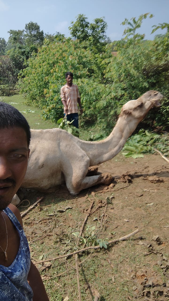 जंगल के गड्ढे में फंसे ऊंट को ग्रामीणों की मदद से लव कुश कश्यप के पहल से सुरक्षित निकला गया