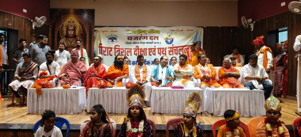 बुधवार असेम्बली हाल पेण्ड्रा में आयोजित विश्व हिंदू परिषद और बजरंग दल द्वारा आयोजित विराट त्रिशूल दीक्षा एवं त्रिशूल शौर्य यात्रा कार्यक्रम में मुख्य अतिथि एवं मुख्य वक्ता बजरंग दल के राष्ट्रीय संयोजक किशन प्रजापत ने उपरोक्त बातें अपने उद्बोधन में कही। उन्होंने कहा कि, कुछ शक्तियां हिंदुओं में जातिवाद का जहर घोलकर उन्हें अलग अलग जातियों वर्गों में भेदभाव उत्पन्न करके हिन्दू धर्म को कमजोर करने का षड्यंत्र कर रहे हैं। सभी हिंदुओं को इस षड्यंत्र से सावधान रहते हुए धर्म और देश की रक्षा के लिए एकजुट रहना होगा। उन्होंने कहा कि, बजरंग दल देशभर में धर्म कार्यों में सहभागिता करता है। हिंदू समाज के साथ खड़े होकर समाज सेवा के लिए कार्य करता है। उन्होंने देशभर में चल रहे बजरंग दल के सेवा कार्यों को बताया।