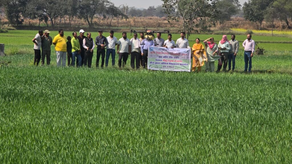 ड्रोन से गेहूं में उर्वरकों के छिड़काव का अग्रिम पंक्ति प्रदर्शन
