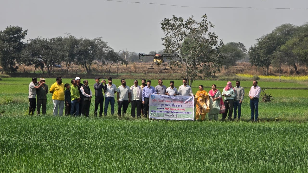 ड्रोन से गेहूं में उर्वरकों के छिड़काव का अग्रिम पंक्ति प्रदर्शन