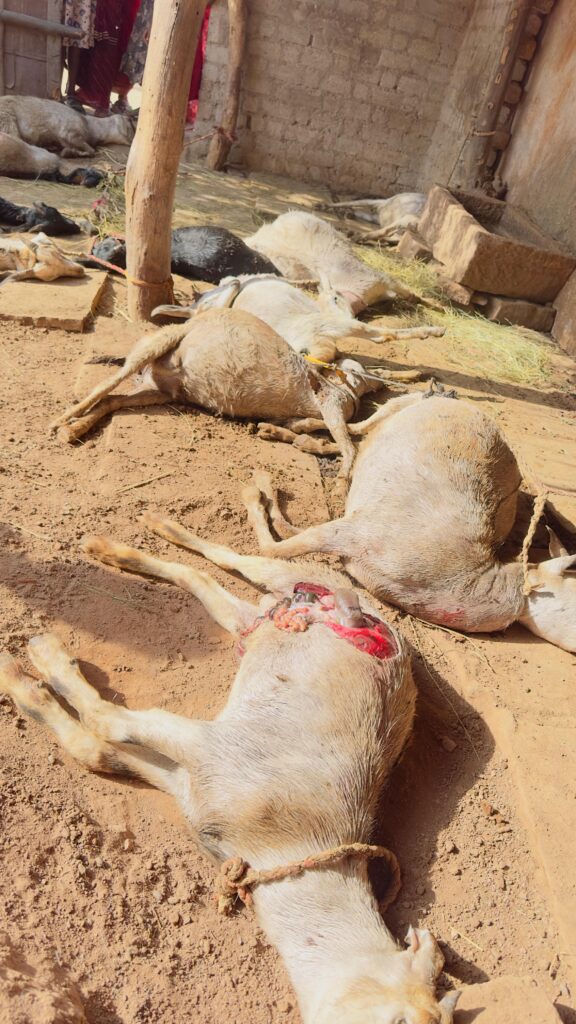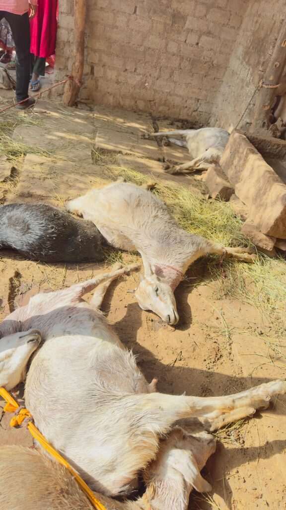 मिली जानकारी के अनुसार, चितावर निवासी प्रेम लाल विरकों प्रतिदिन की तरह अपने बकरा-बकरियों को शाम के समय चराने के बाद घर के आंगन में बांधकर सो गए थे। लेकिन सुबह जब वे उठे तो उनके होश उड़ गए—आंगन में एक-दो नहीं बल्कि सभी 17 बकरा-बकरियों की लाशें पड़ी थीं।