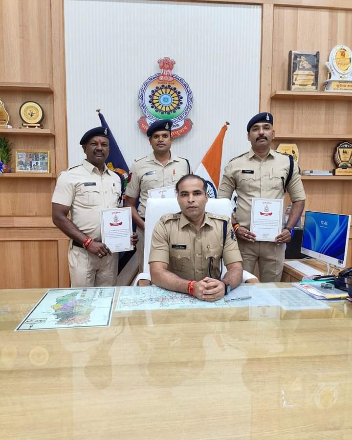 थाना सिटी कोतवाली क्षेत्रांतर्गत चार मंजिला मकान में आग लगने की सूचना पर पुलिस पेट्रोलिंग पार्टी के प्र.आर. योगेश चन्द्राकर, आरक्षक उत्कर्ष सिंह और चालक आरक्षक नवीन यादव द्वारा उक्त मकान में खिड़की तोड़कर अंदर फंसे तीन व्यक्तियों को सुरक्षित बाहर निकाला।