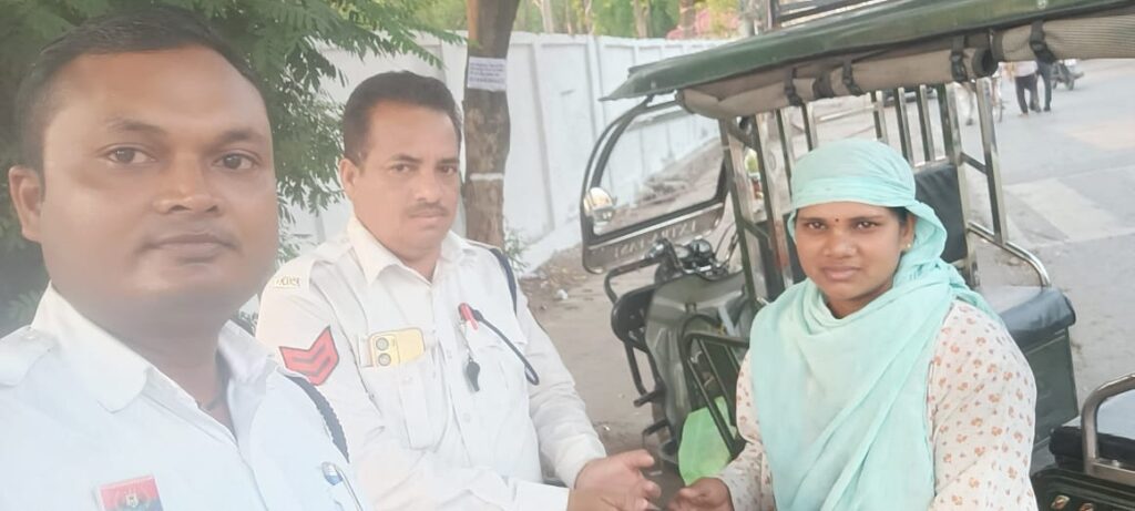 चौक में तैनात यातायात पुलिस द्वारा सराहनीय कार्य