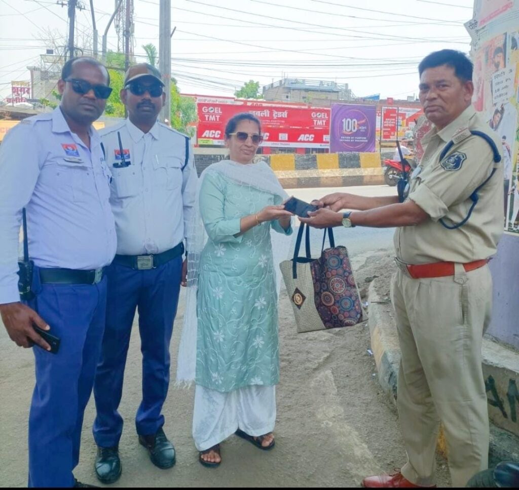 इसी क्रम में यातायात पुलिस के द्वारा सड़क पर चलते हुए अपने पर्स मोबाइल गुमा देने वाले दो महिलाओं का मोबाइल व पर्स वापस किया गया।