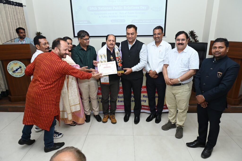 रायपुर। पब्लिक रिलेशन्स सोसाइटी ऑफ इंडिया (PRSI) रायपुर चैप्टर द्वारा 21 अप्रैल को एनआईटी कैंपस स्थित गोल्डन टावर सभागार में आयोजित 38वें राष्ट्रीय जनसंपर्क दिवस समारोह में छत्तीसगढ़ के मीडिया, संचार और जनसंपर्क क्षेत्र से जुड़ी आठ विशिष्ट हस्तियों को राष्ट्रीय स्मृति पुरस्कारों से सम्मानित किया गया। इस अवसर पर The Hitavada रायपुर के समाचार संपादक और वरिष्ठ खोजी पत्रकार मुकेश एस. सिंह को उनकी तीन दशकों की निर्भीक, विश्लेषणात्मक और जनहित पर केंद्रित पत्रकारिता के लिए “डी.पी. चौबे स्मृति जनसंपर्क पुरस्कार” से सम्मानित किया गया।