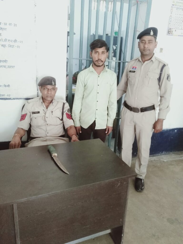 बिलासपुर।जिले के पुलिस अधीक्षक ने जिले के सभी थाना और चौकी प्रभारीयों को नगरीय चुनाव के मद्देनजर क्षेत्र मे शांति व्यवस्था के साथ-साथ अवैध हथियार रखकर लोगो को डराने,धमकाने वाले व्यक्तियों के विरूध्द अंकुश लगाने हेतु निर्देशित किया गया था, इस दौरान बिल्हा थाना प्रभारी को मुखबीर से सूचना मिली कि राहूल साहू नाम का व्यक्ति एक चाकू लेकर ग्राम दगौरी भवानी चौक बाजार तरफ आने जाने वाले लोगो को डरा धमका रहा था जिसे मौके पर घेराबंदी कर आरोपी से नुकीला गुप्तीनुमा चाकू जप्त कर वैधानिक कार्यवाही की गयी है।