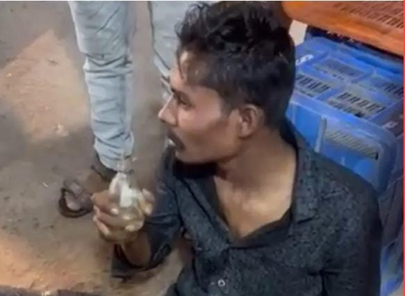 सब्जीवालो ने नशेड़ी युवक को सिखाया सबक