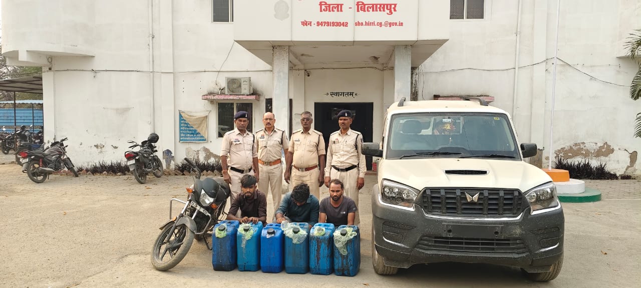 हिरीं पुलिस ने बताया कि मुखबिर से सूचना मिली की बिना नंबर की स्कार्पियों वाहन में और बाइक में बाहर से चोरी कर लाये गये डीजल को लाकर धौराभाठा सर्विस रोड रायपुर मार्ग में बेचने की फिराक में ग्राहक की तालाश कर रहे हैं। सूचना पाकर पुलिस पहुंची तो देखी की ग्राम धौराभाठा सर्विस रोड रायपुर बिलासपुर मार्ग में एक सफेद रंग की स्कार्पियो में 4 लोग बैठे हुए है और एक बाइक म्मे दो लोग बैठे हुए है।जो पुलिस को आते देख अंधेरे का फायदा उठाकर स्कार्पियो में बैठे 3 लोग वहां से भाग गये। जिसमे से एक को पकड़कर पूछताछ किया गया। पकड़ाया हुआ लड़का अपना नाम मनीष कुमार जांगडे भिलाई बलौदा जांजगीर चांपा का रहने वाला बताया ।पुलिस की पुछताछ म उसने स्कार्पियों में बैठे व्यक्ति जो मौके से भाग गये थे उनका नाम और पता भी बताया । जिसमे अशोक सोनवानी दर्राभाठा, मोनू यादव बलौदा, सुभाष कश्यप बलौदा का रहने वाला बताया । पुलिस ने आरोपियों से पूछा तो उन्होंने बताया कि बाइक में आये लड़के दीपांशु कौशिक पिता श्याम सुंदर उम्र 23 साल डोडकीभाठा बिल्हा एवं तुषार चक्रधारी पिता पिताम्बर चक्रधारी उम्र 23 साल वार्ड नंबर 01 महुआ चौक बिल्हा का रहने वाला है।जिनके खिलाफ कार्रवाई की गई है।पकड़े गए आरोपियों के निशानदेही पर 210 लीटर डीजल और स्कॉर्पियो के साथ ही बाइक भी जप्त किया गया है।