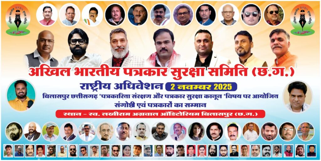 पत्रकारिता संरक्षण पर संगोष्ठी न्यायधानी बिलासपुर में 2 नवंबर को…अखिल भारतीय पत्रकार सुरक्षा समिति करेगी छत्तीसगढ़ के साथ अन्य राज्यों से आये पत्रकारों का सम्मान
