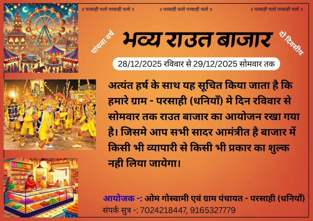 परसाही धनियां का दो दिवसीय राऊत बाजार 28 से29 दिसंबर