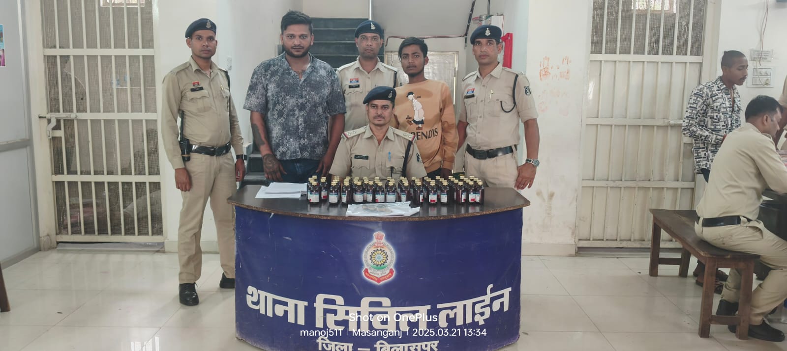 सिविल लाईन सीएसपी निमितेश सिंह ने बताया कि गुरुवार को सूचना मिली कि तालापारा घोड़ादाना स्कूल के पास दो लोग नशीली कफ सिरप बेचने के लिए ग्राहक तलाश रहे हैं। इस पर पुलिस ने घेराबंदी कर कमल साहू उर्फ (20) और विक्की पांडेय उर्फ भूपेंद्र (20) को पकड़ लिया।तलाशी के दौरान कमल साहू के पास से 30 नग नशीली कफ सिरप और एक देसी पिस्टल बरामद हुई। वहीं, विक्की पांडेय के पास से 30 नग नशीली कफ सिरप और बिना नंबर की बाइक जब्त की गई। दोनों आरोपियों को थाने लाकर पूछताछ किया गया तो उन्होंने बताया कि वे नशीली कफ सिरप खपाने तालापारा में गए थे,पर इस क्षेत्र में उनकी पुरानी दुश्मनी भी है,लिहाजा उन्होंने अपने साथ पिस्टल भी रख ली थी। पुलिस ने उन पर एनडीपीएस और आर्म्स एक्ट के तहत कार्रवाई की हैं।