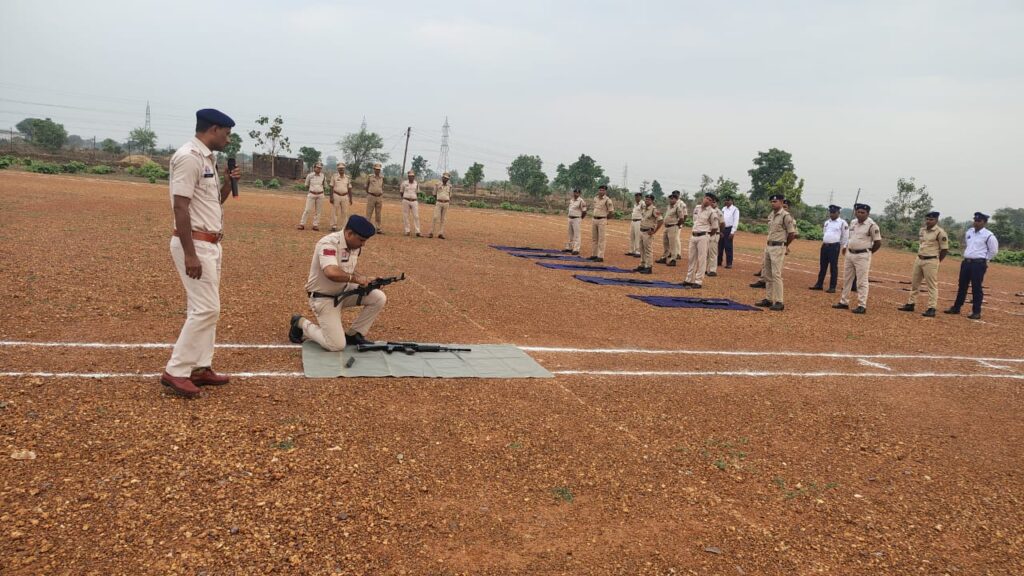 पुलिस अधिकारी एवं कर्मचारियों को परेड के साथ AK-47, इंसास रायफल चलाने और खोलने जोड़ने का कराया गया अभ्यास