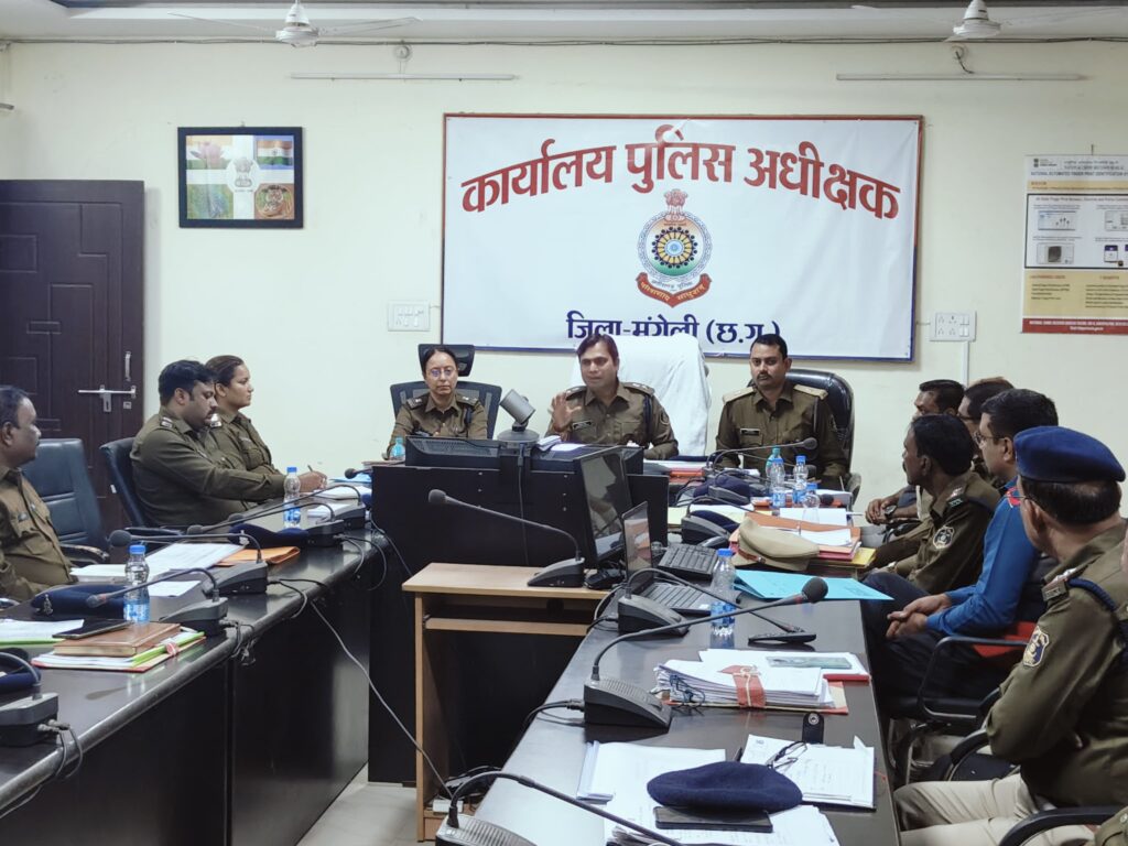 पुलिस अधीक्षक भोजराम पटेल ने लंबित मामलों के निकाल, महिला संबंधी अपराध, साइबर फ्रॉड के मामलों में त्वरित कार्यवाही करने दिये गये निर्देश।
