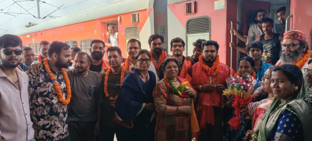 जीपीएस।यह यात्रा न केवल धार्मिक आस्था का प्रतीक है, बल्कि साहस और भक्ति का अद्भुत उदाहरण भी है। आज पेंड्रारोड रेलवे स्टेशन पर विश्व हिंदू परिषद और बजरंग दल के सदस्यों ने श्रद्धालुओं का भव्य स्वागत किया। पुष्पवर्षा और जयकारों के बीच उन्हें अंगवस्त्र पहनाकर, तिलक और चंदन लगाकर सम्मानित किया गया। इस स्वागत ने श्रद्धालुओं के उत्साह और भक्ति को और प्रबल कर दिया।