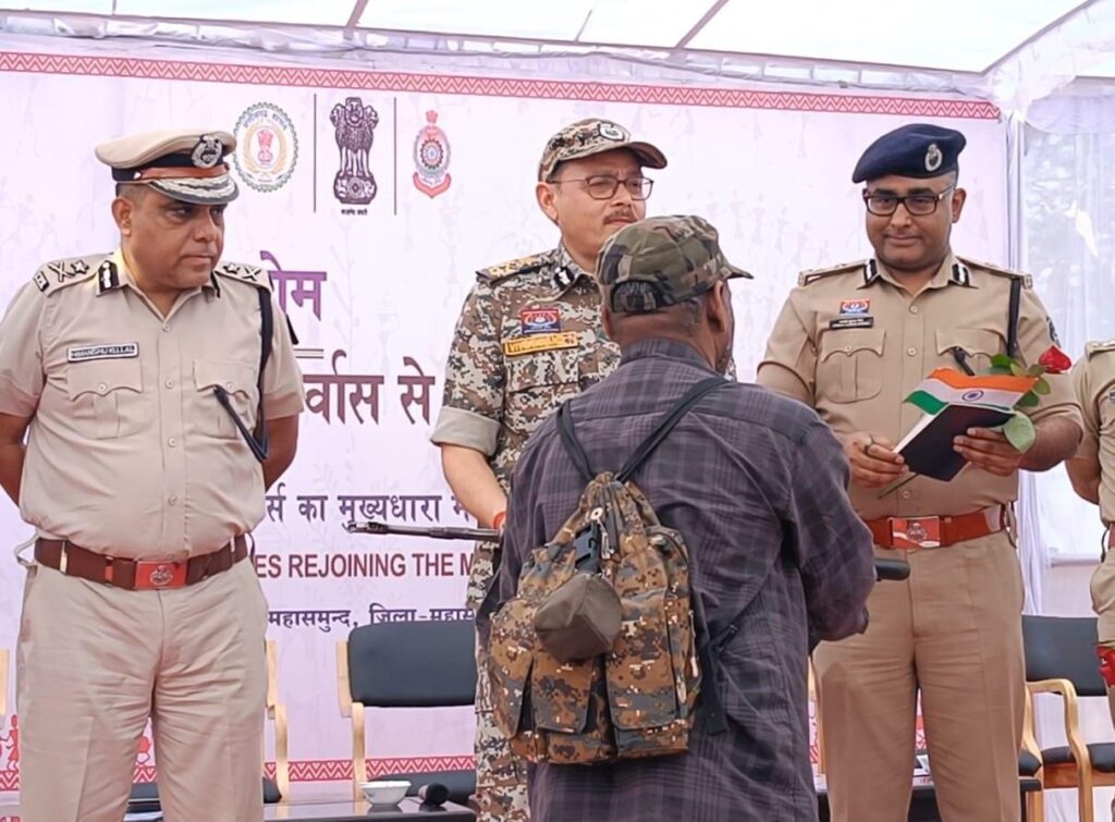 पुलिस अधीक्षक जिला महासमुंद प्रभात कुमार की उपस्थिति में किया गया आत्मसमर्पण।