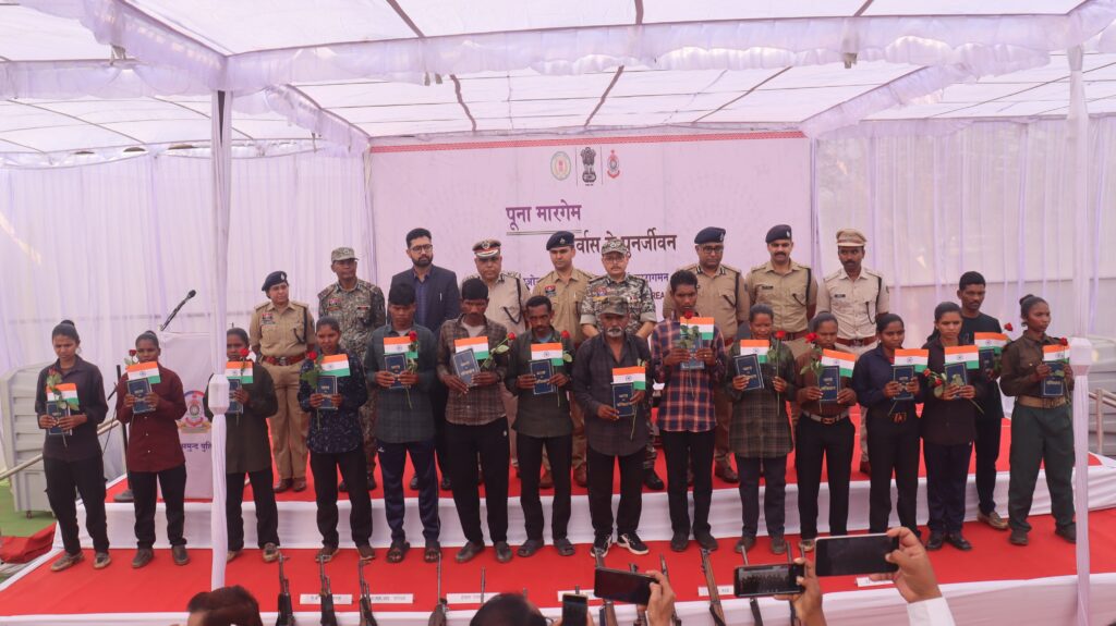 राज्य शासन की व्यापक नक्सल उन्मूलन नीति और शांति, संवाद एवं विकास पर केन्द्रीत सतत् प्रयासो के परिणामस्वरूप पूना मारगेमः- पुनर्वास से पुनर्जीवनः कार्यक्रम के अंतर्गत माओवादी कैडर ने हिंसा का मार्ग त्यागकर संविधान, लोकतंत्र और विकास की मुख्यधारा में लौटने का संकल्प लिया है।